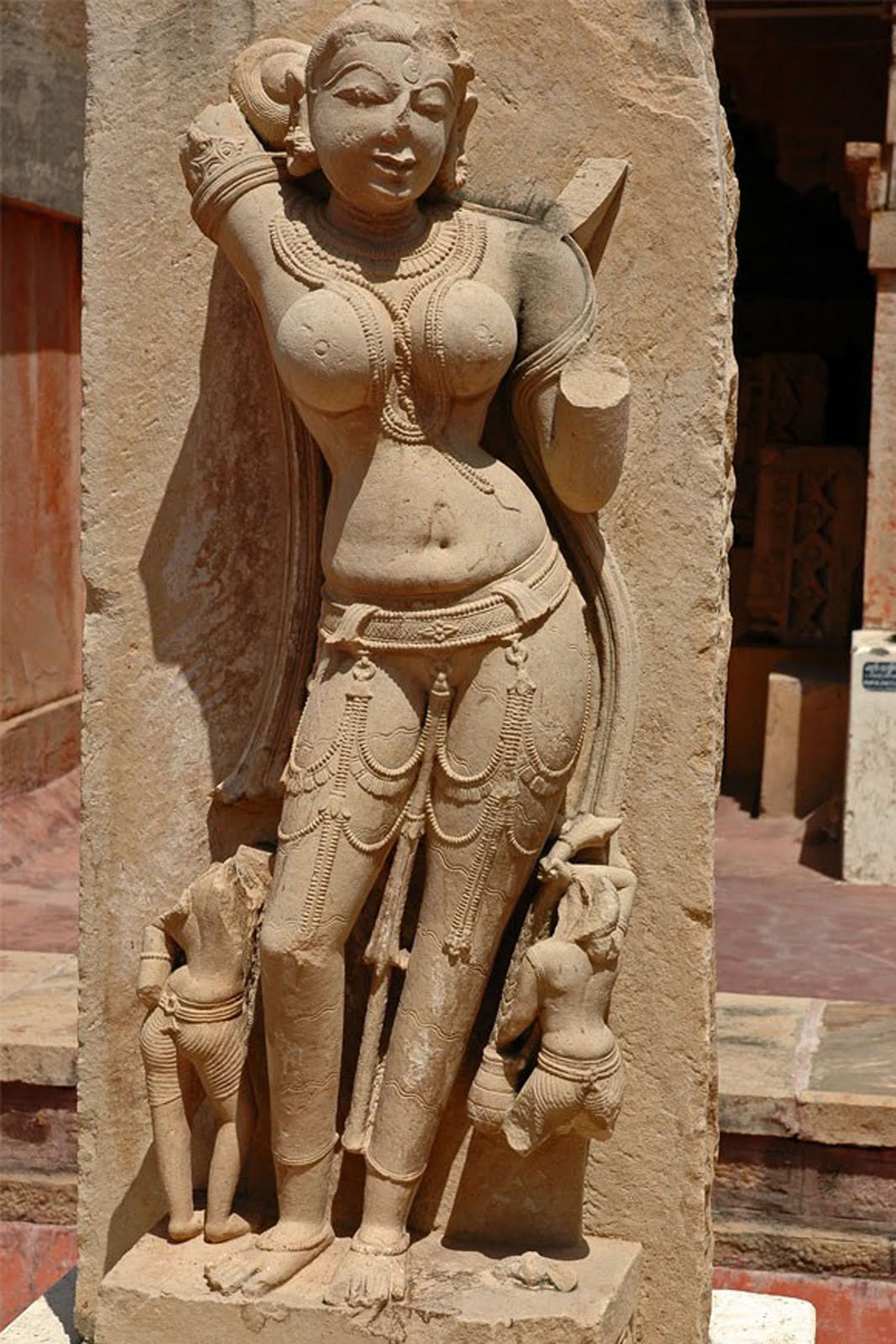 Observamos los encantadores cuerpos femeninos de las nayikas, esculpidos en diferentes posturas en el subcontinente indio (II d.de C. en adelante) durante los períodos de los Sunya, los Satvahana, los Kushana, los Gupta, los Chalukya, los Rashtrakuta y los Pala, hasta lograr su cumbre artística durante el reinado de los Chandela, los Ganga y los Hoyshala. Las esculturas Chandela exploran, de manera encantadora, la belleza femenina en todos sus aspectos matizados para embellecer las paredes de los templos. Las nayikas, apsaras, vrikshikas, ganikas y surasundaris en las paredes exteriores de los templos de Khajuraho describen prácticamente casi todos los aspectos de la actividad femenina, tales como la forma de vestirse, de desnudarse, de maquillarse, de adornarse, de secar el cabello mojado, de quitar una espina de una punta de pie, de escribir una carta, etc.