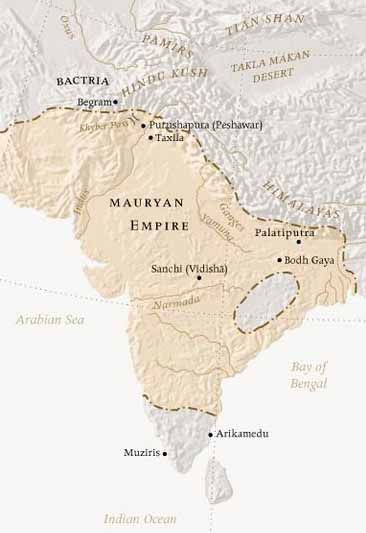 En cuanto a la capital del reino, Pataliputra, tenía nueve millas de largo por casi dos de ancho. Megástenes señaló que le palacio real estaba construido en madera y superaba con creces a las construcciones que Alejandro levantara en Echatana y Susa. «Sólo -decía- es comparable con Persépolis». El historiador Smith recopiló en su Oxford History las crónicas de aquellos comentaristas y dijo: «En los siglos IV y III antes de Jesucristo la posición del monarca Maurya en cuanto a esplendor y lujos de toda clase y a expertos artesanos en todos los oficios no era en nada inferior a la que disfrutaron los emperadores mogoles dieciocho siglos más tarde», señala también que las columnas estaban chapeadas en oro y decoradas con este metal, pero la verdadera ostentación de esta cultura lo demostraban vasos de oro de seis pies de diámetro.