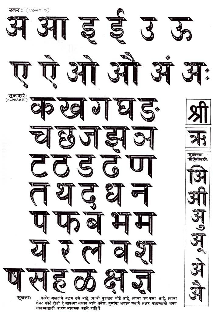 El hindí se escribe en el alfabeto del sánscrito, llamado devanagarî. Se escribe de izquierda a derecha, sin diferenciación de minúsculas y mayúsculas. Aparecen primero las vocales, en número de once, seguidas de cuarenta y siete consonantes y otras tantas medias consonantes. Es de destacar el hecho de que el hindí es una lengua cien por cien fonética, sin ninguna irregularidad en la pronunciación, lo que compensa en parte la obvia dificultad producida por su gran cantidad de sonidos.